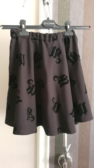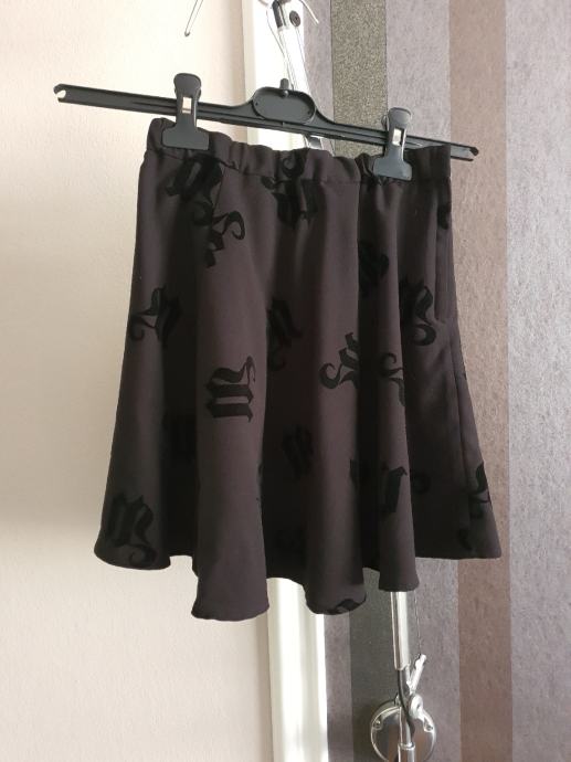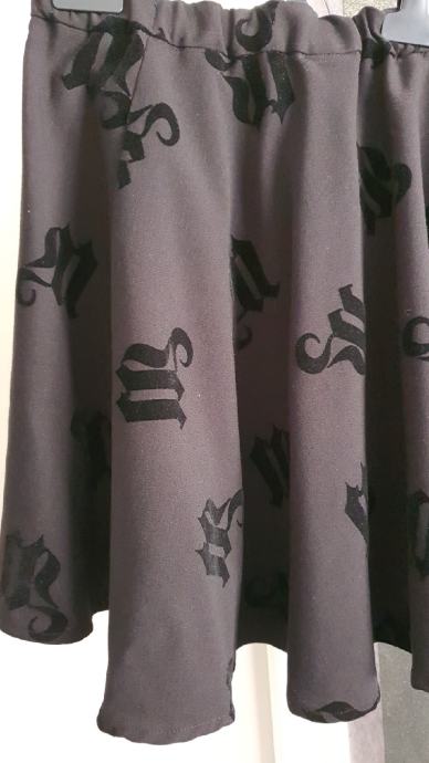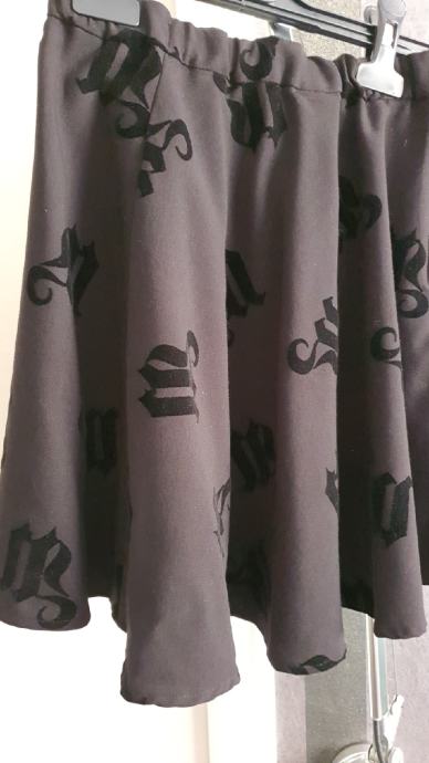 Prodajem novu crnu suknjicu, vel 38, s otisnutih plišanim slovima, zvonolikog kroja.