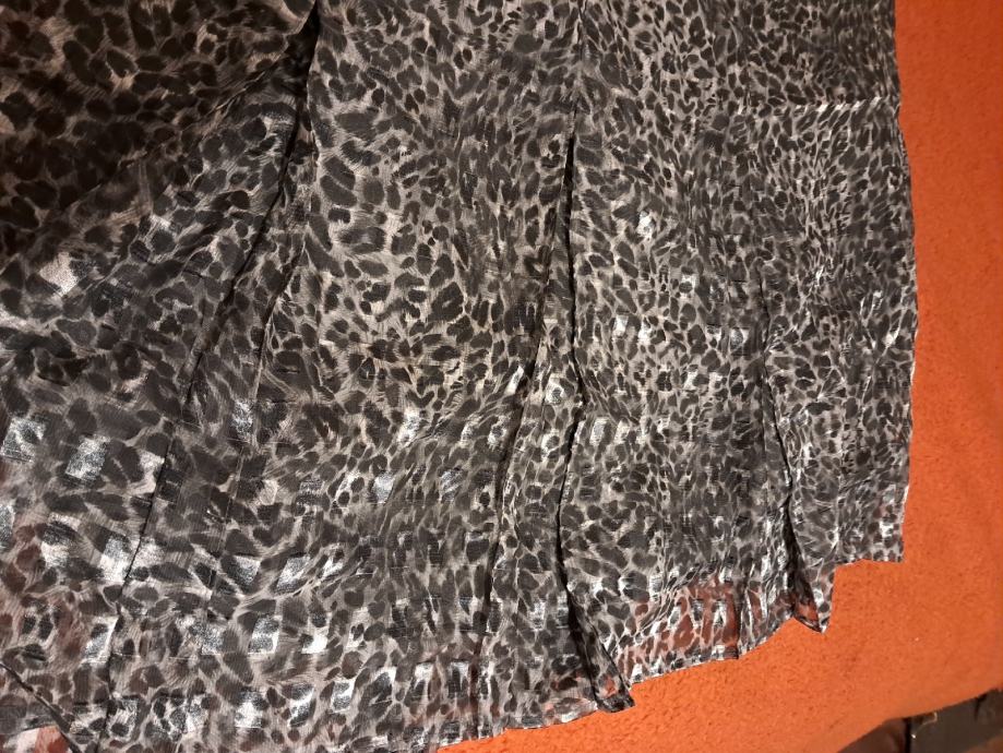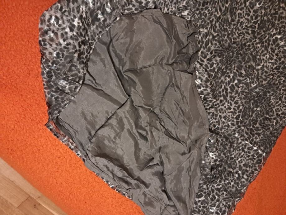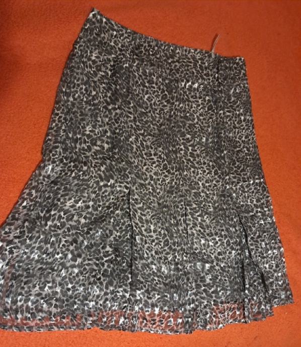 Suknja od laganog materijala, sa podstavom, ima plisirane nabore u donjem dijelu