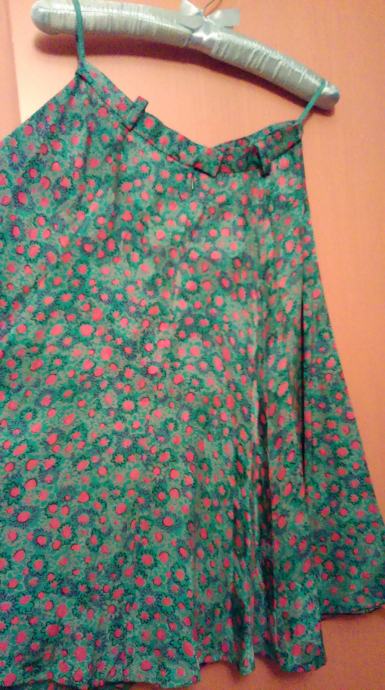 Predivna trava-zelena suknja od čiste svile, ide u A kroj i bogato je nabrana (kad se zavrti čini puni krug).