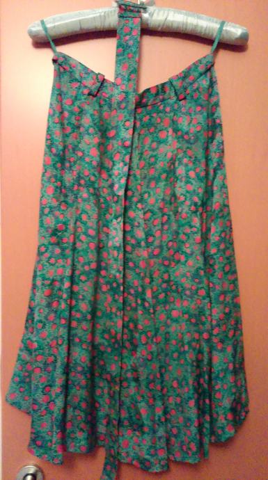 Duljina malo ispod koljena. Podstavljena cijelim putem, podstava je svila/viskoza.