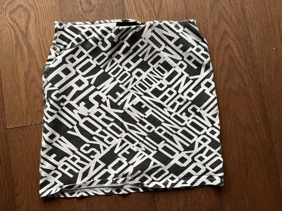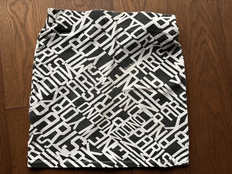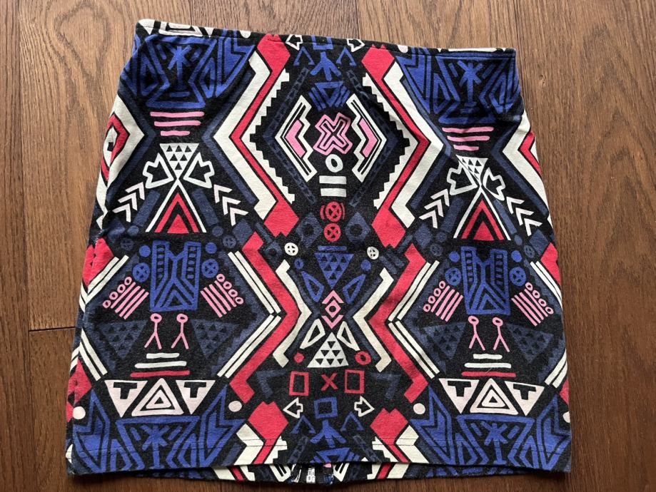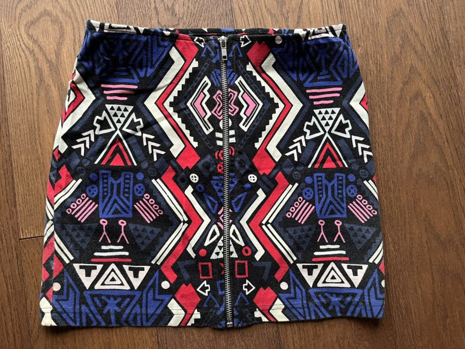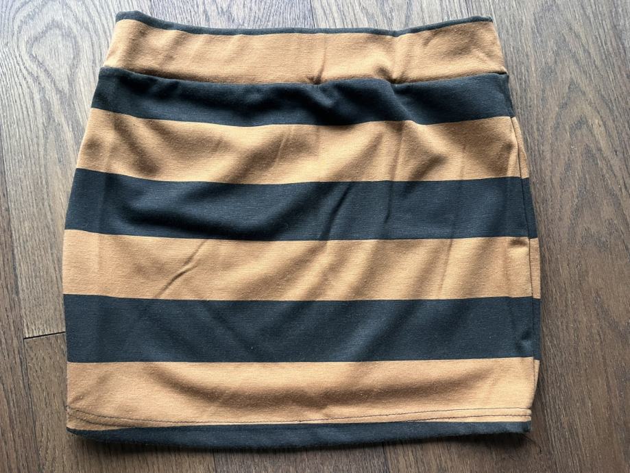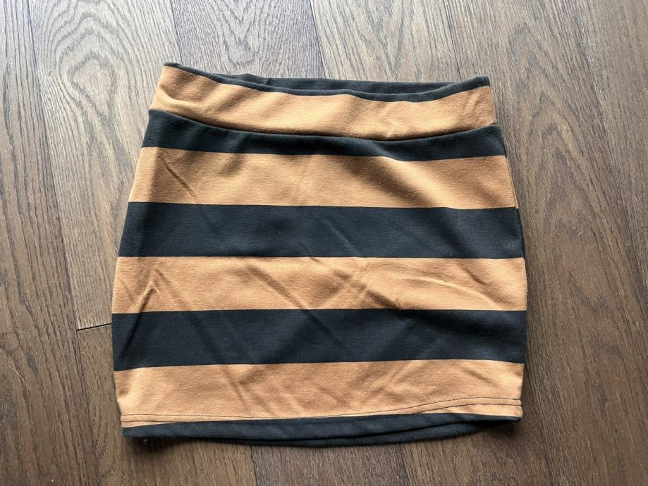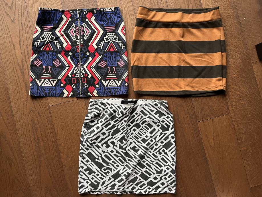 Tri suknje / minice. Prugasta Terranova XS, crno bijela Tally Weijl 36, šarena H&M 36.