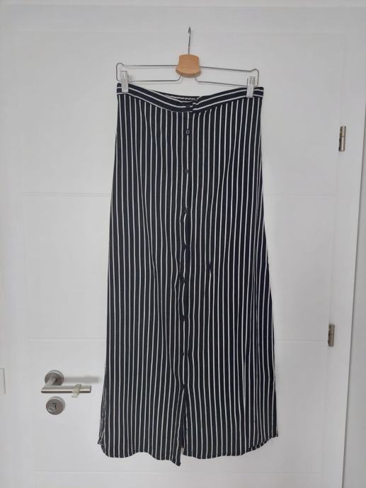Par puta nošena lagana maxi suknja kupljena u Terranovi. Veličina XL. Suknja ima gumu na struku, a uzduž suknje (po sredini) su gumbi koji se mogu otkopčati te se tako može regulirati izrez. A kroja, lagana i prozračna, odlična za ljeto.