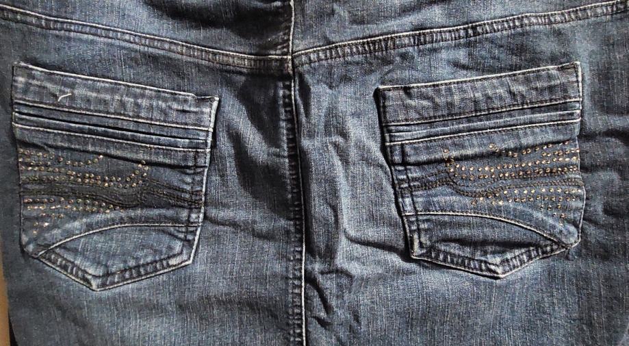 3. Plava, C&A, veličina 46, nošena par puta, na stražnjim džepovima ima svjetlucave kamenčiće (zadnja slika). Cijena 2,5 €.