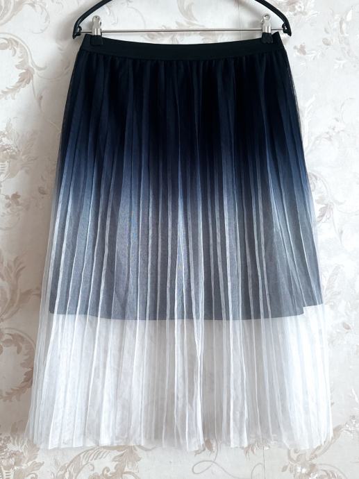 Plisirana, midi dužina (ispod koljena), ombre prijelaz boja (od indigo do bijele).