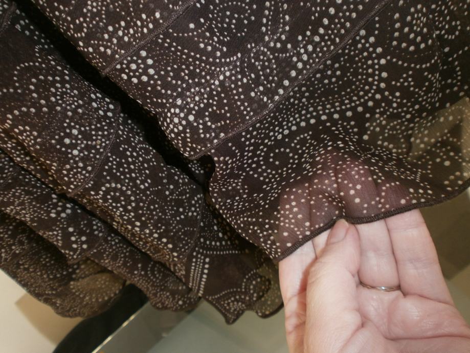 Pasica je na gumu i širina je 34cm bez rastezanja, a rasteže se do 42cm, tako da odgovara za S/M veličinu
