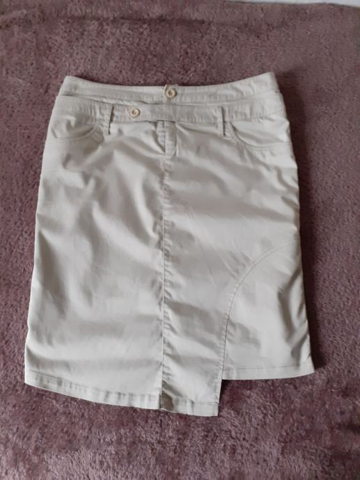 Neobična suknja asimetrično krojena, s duplom pasicom, podstavljena.