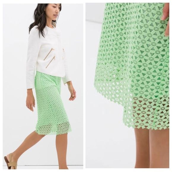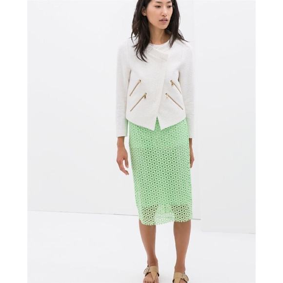 Prodajem NOVU čipkanu Zara midi suknju, sa podstavom, prekrasna, udobna, pamucna, odozada zatvarac, velicina S