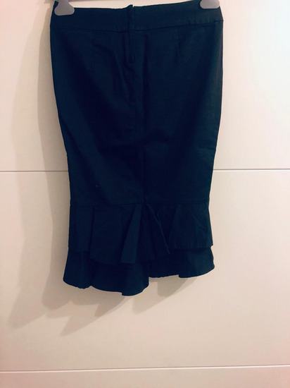 Prodajem savršeno očuvanu crnu mini suknju ZARA. Savršeno se kombinira uz obične majice i košulje. Nošena svega par puta. Straga ima sjajan detalj - volančiče.