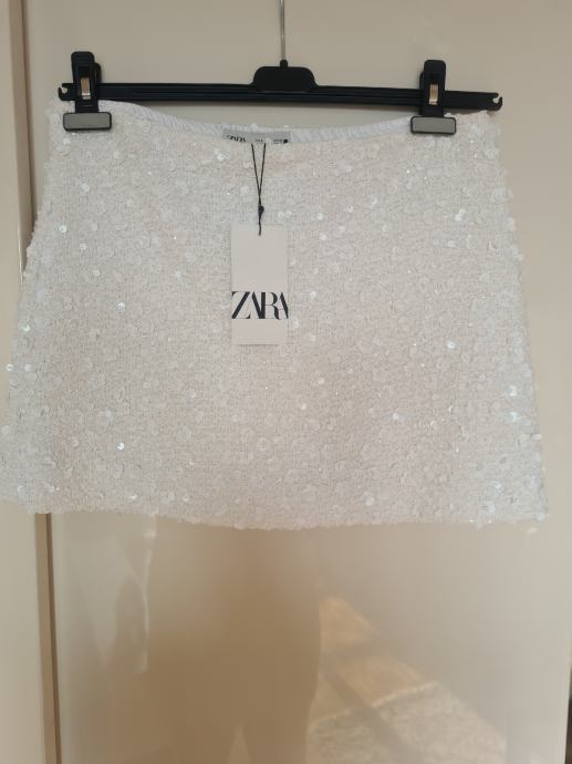 Nova Zara mini suknja, velicine XS i L, sastrane zatvarac, izvezen sa ukrasima.