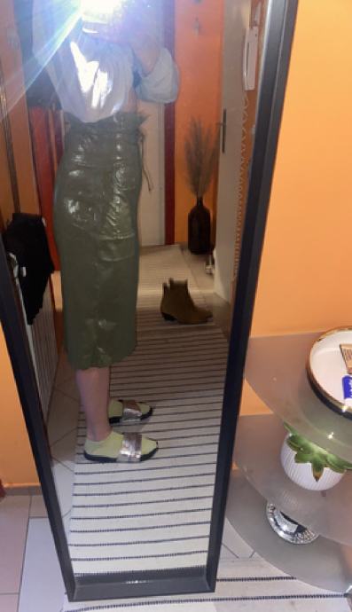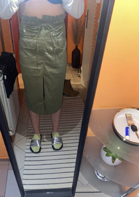 Predivna pvc vinil suknja zara!Vel M,1 obučena,kao nova.Maslinasto zelena