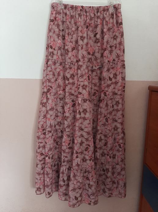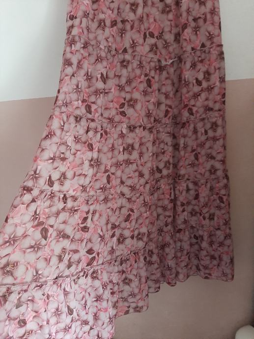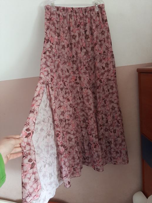 Prekrasna cvijetna duga suknja s rasporkom s jedne strane. Nošena svega par puta. Vel. Od 38 do 42