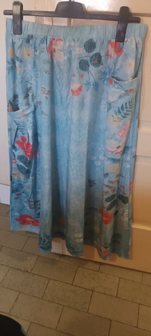 Prodajem žensku dugu suknju u veličini 44, pogodnu i za 46. Suknja je šarenog uzorka i seže ispod koljena. Stanje je novo bez etikete.