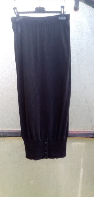 Midi crna suknja od pamuka, ravna i sužava se dolje pasicom sa 4 gumbića, ima gumu u pasu, br. 42/44.