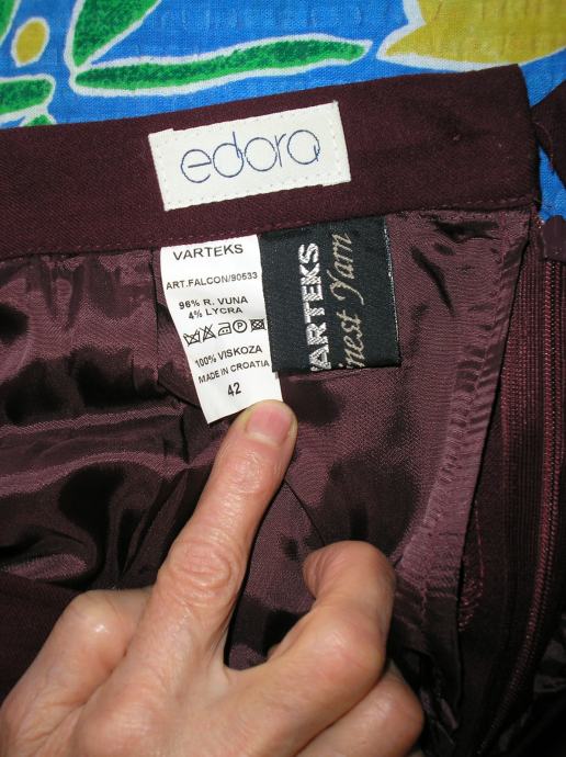 Ženska suknja Edora Varteks, broj 42, očuvana, 96 % runska vuna, 4 % lycra, 100 % viskoza, nošena jednom!