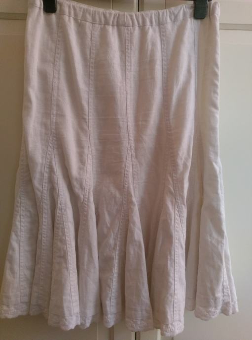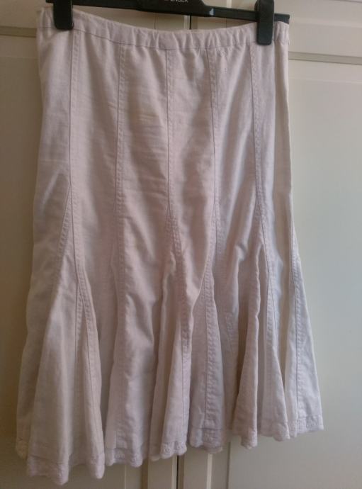 Prodajem žensku suknju bogatog kroja, porub od čipke, Miss Selfridge, vel. 38, engleski 10, u odličnom stanju, kao nova, nenošena. Sastav: 56% lan, 44 % pamuk.