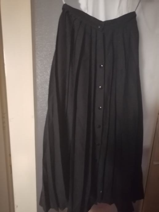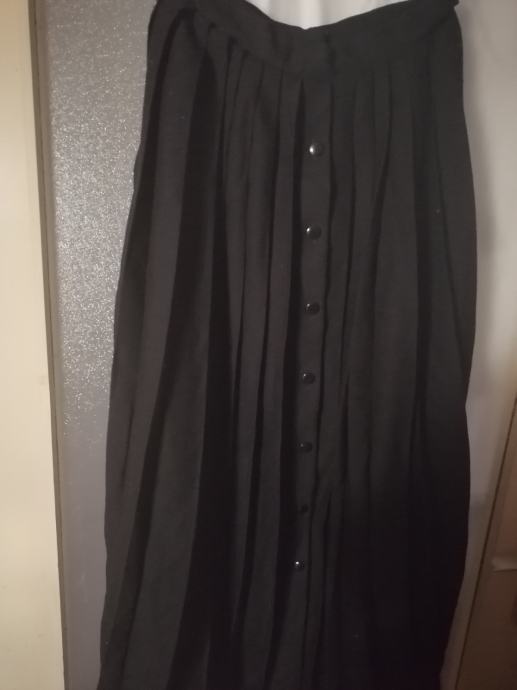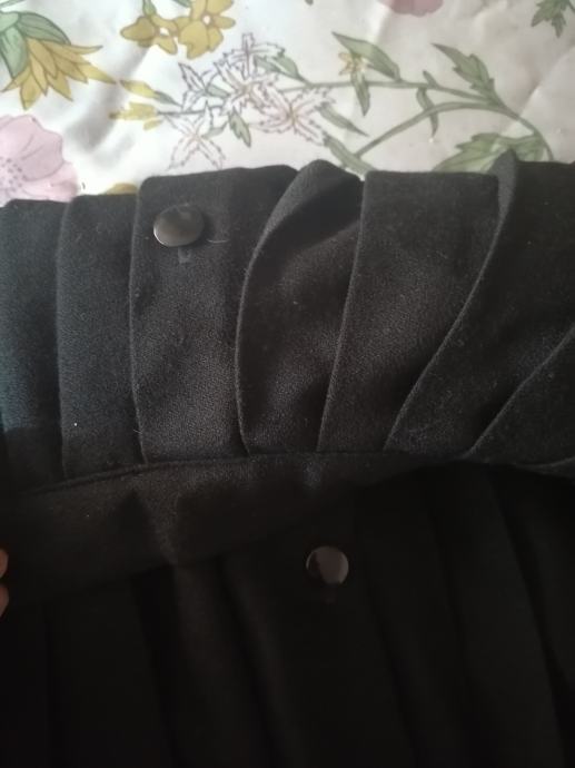 Zenska svecana crna plisirana suknja za svecane prigode, duzina 88cm od runske vune (iz vakumirane vrecice izvucena bez peglanja) 3x rabila za vjencanja- straga i prednja strana s dugmicima