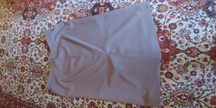 Prodajem ŽENSKU SUKNJU ( ŠOS ), klasičnu, šivanu po mjeri. S postavom. Odgovarala bi veličini br. 44. Duljine ispod koljena. Prikladnija za višu, ozbiljniju, osobu.