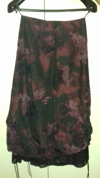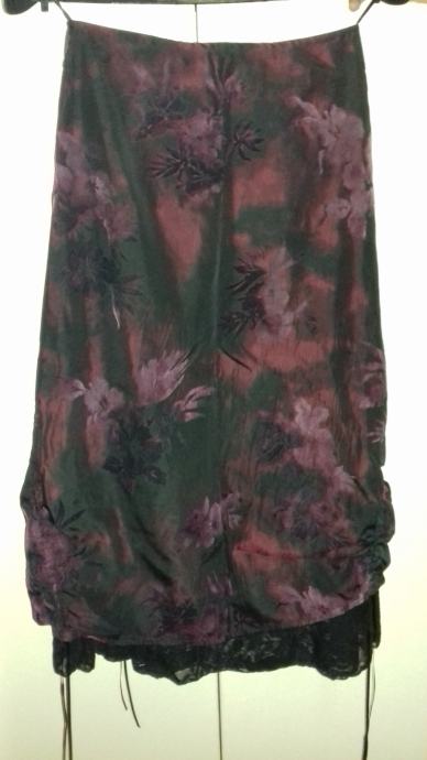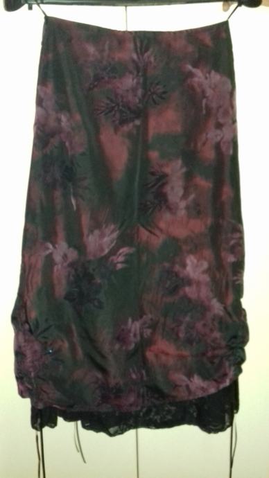Ženska suknja - šos, tamno ljubičaste boje, kao novo - nošena jednom, svečana i kvalitetna, broj 36,ima vezice sa strane, tako da se duljina može podešavati - prodajem za 35 Eura.