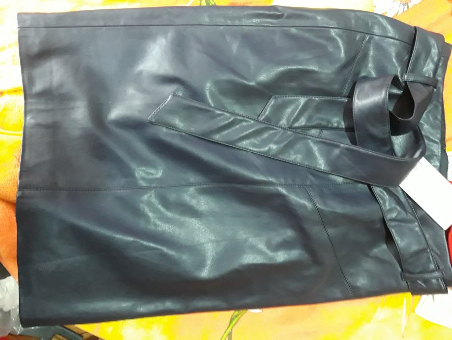 Nova nenošena suknja, još ima etiketu. Kupila je preko neta ali mi ipak ne stoji. Broj 34 ali je malo komotnija, netko tko nosi 36 može. Tamnoplave boje. Materijal:umjetna koža.