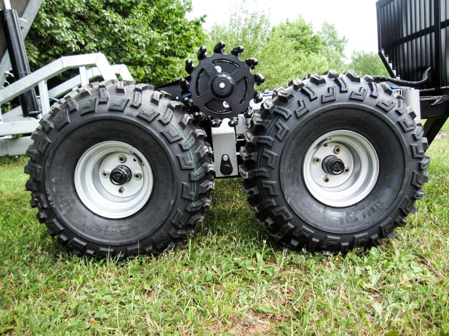 4WD s pogonskimi motorji 200cc ali 400cc. Kolesni pogon vlečnih dvigal s tako imenovanimi vlečnimi valji v kombinaciji z delovnim štirikolesnikom ali manjšim traktorjem vam zagotavlja vozne lastnosti vlečnih vozil 8×8. Ta potisni pogon je zelo priljubljen pripomoček, zlasti med našimi strankami, ki delajo s štirikolesniki ali UTV,..... Pogon ima dva delovna položaja: naprej in nazaj (vzvratna vožnja ali celo zaviranje!) - krmiljena s stikalom, ki se nahaja v bližini krmila vozila (stikalo - elektrohidravlični del stikalne plošče). Ta hidravlični kolesni pogon ima tlačno silo 650 kg. Zasnova je zelo enostavna, ni občutljiva na poškodbe, stroški servisa in vzdrževanja pa so minimalni.