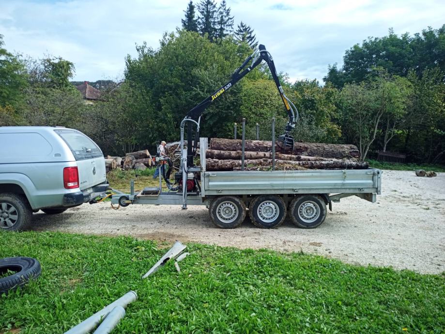 Šumska prikolica sa kranom - gozdarska prikolica in žerjav VAHVA JUSSI 320 je popolnoma profesionalni sistem, ki v kombinaciji z zmogljivim štirikolesnikom ali manjšim traktorjem, Iron Horse, UTV, SUV,.... tvori popolno, hitro in zelo okretno enoto.