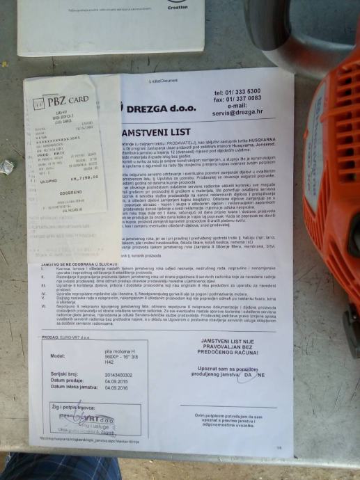 Prodajem profesionalnu motornu pilu Husqvarna 560 xp 3.5 kw,4.8 ks,u odlicnom stanju. Kupljena 4.9.2015. Posjedujem racun,placena 7.200 kn..Sluzila za ogrjev za kucanstvo.. Moze se isprobati. Cijena nije fixna.. Kontakt na broj 0916050035