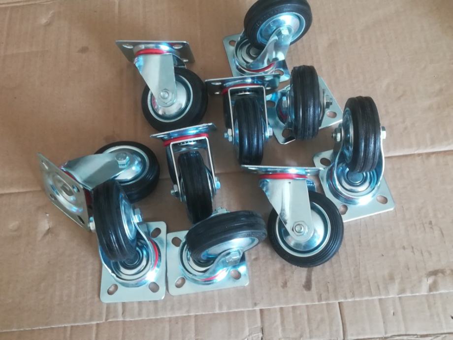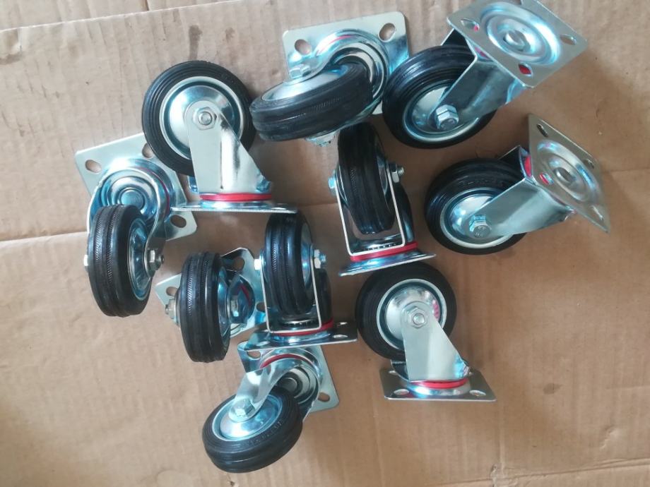 Prodam okretne gumene kotače sa ležajevima ,bez kocnica, komad za 12 e. Imam 10 kom. a za sve po dogivoru,a fi 125 mm.kotac za 16 e kom.imam isto 10 kom. Moguča dostava poštom.