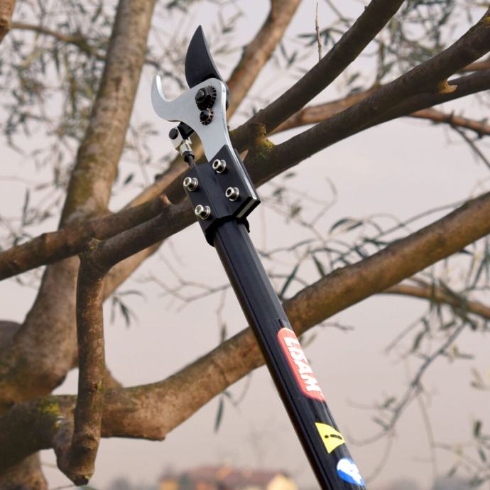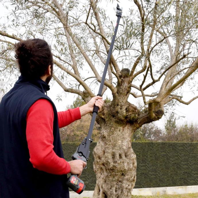 Snažne električne škare LISAM TL42 koje se mogu postaviti na produžnu šipku povećavaju svoj radni raspon na 165-240 cm visine. Teleskopska produžna šipka, kako bi se iskoristila praktičnost i snaga električnih škara TL42 Plug-In čak i za visoko orezivanje.