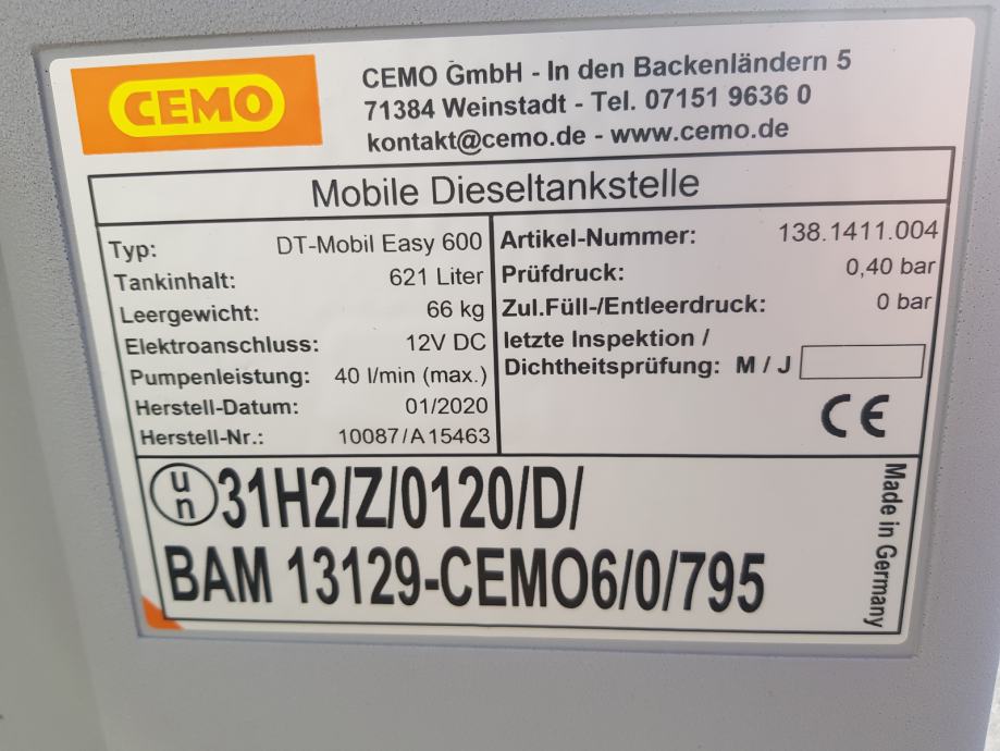 Mobilni rezervar za DIESEL gorivo 600 LIT + DIG. BROJAČ CEMO NJEMACKA
