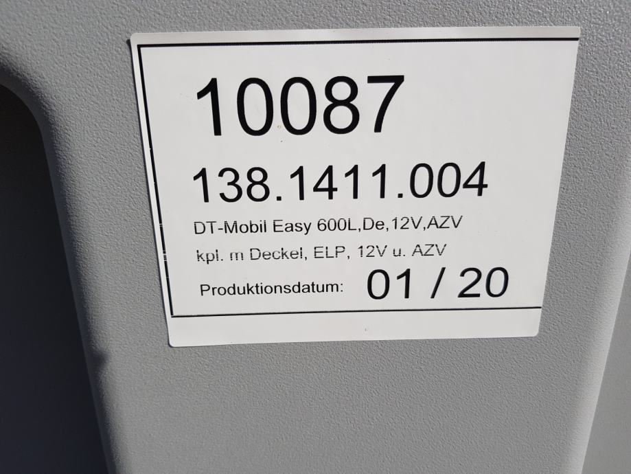 Model u oglasu zapremine 600 lit, pumpa 12 V na akumulator, pistolj s crijevom, poklopac i digitalni mjerac protoka.