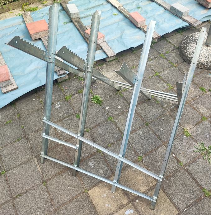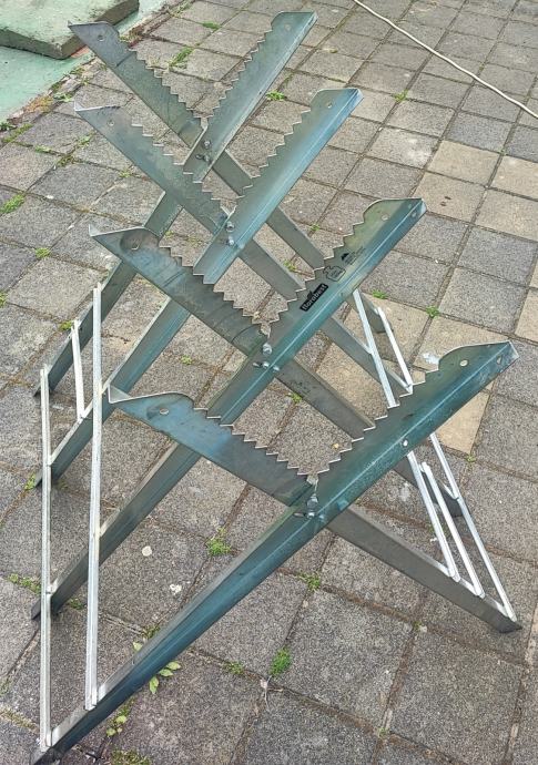 Pocinčani stalak za piljenje drva sklopivi, izrazito stabilan jer ima četiri sklopiva nogara i zupce