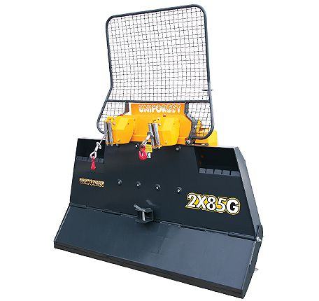 Šumarsko vitlo 2x85G ima dva neovisna hidraulična sustava za svaki bubanj s vučnom silom od 8,5t posebno. Omogućuje bezbjedan rad jer se vitlo postavlja bliže traktoru, a kolotur je pričvršćen niže, što poboljšava i smanjuje težište vitla. Tako postoji manja vjerojatnost podizanja traktora. Svaki bubanj ima veliki kapacitet užadnog bubnja, što omogućuje više navijenog žičanog uža. Za jednostavan rad su na prednjoj strani vitla velika mjesta za odlaganje (PATENT) kako prljavština s koluta traktora ne bi došla i između lance i ostalu opremu. Za lakšu manipulaciju i slaganje trupaca dostupna je i hidraulična pregibna daska.