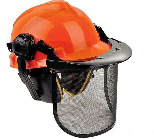 Zaštitna šumarska kaciga : jednostavna prilagodba veličini glave korisnika zahvaljujući sustavu čegrtaljke, visoka udobnost zahvaljujući maloj težini, traka za znojenje Zaštita za lice :s vizirom od žičane mreže