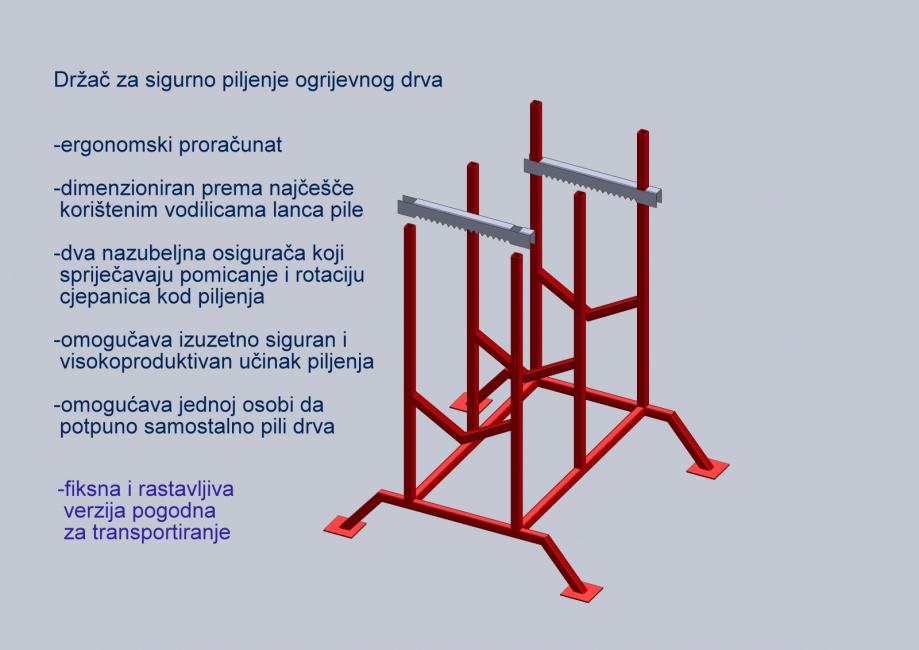 Siguran, ergonomski držač za brzo i učinkovito piljenje piljenje drva.