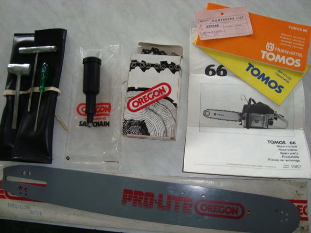 Prodajem profesionalnu motornu pilu Tomos Husqvarna, model 66, jačine 4,5KS i dužine vodilice 45cm sa metalnim kučištem motora. Proizvedena je 1987g kad je i kupljena nova(28.12.1987.)! Stajala je u kutiji na tavanu, sve je u kompletu novo neotvoreno: vodilica, lanac, set alata, mazalica vrha vodilice, uputstvo, jamstveni list, kontrolni list, lista rezervnih dijelova...Za neupučene, Tomos je proizvodio nekoliko modela motornih pila( 650, 770, 61FF, 66, 162, 266...) u kooperaciji sa Švedskom markom Husqvarna, koje su se pokazale kao iznimno izdržljive, robusne i jednostavne za upotrebu i kasnije održavanje! Valjda netrebam napomenuti da je to proizvod iz doba dok su se stvari proizvodile da traju i od kvalitetnih materijala a ne ko ove danas made in Kina i Taiwan! Molim samo ozbiljne kupce koji znaju cijeniti prave vrijednosti iz doba socijalizma! Hvala! Moguća je i zamjena!