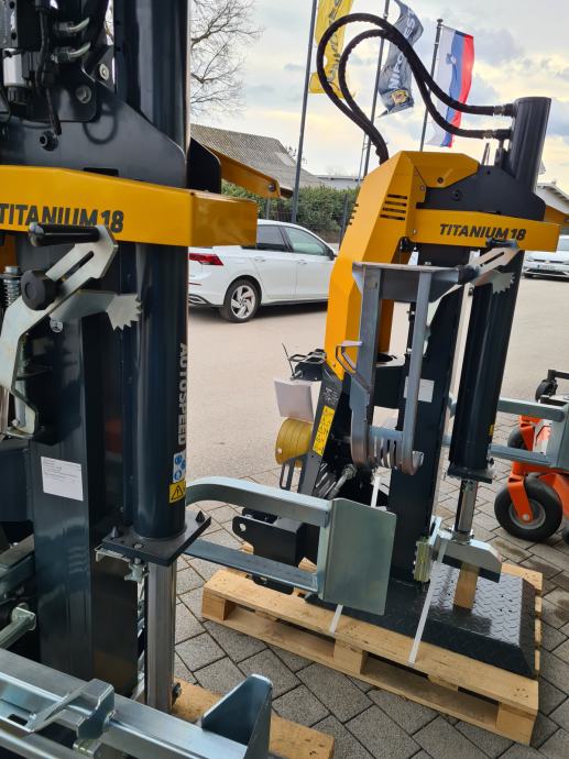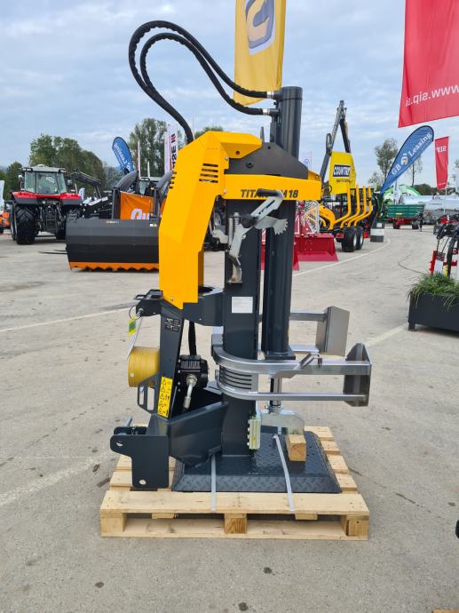 Cijepač drva TITANIUM 18 može imati pogon na traktor (kardansko vratilo), elektromotor ili kombinirani pogon. Cijepanje je brzo i učinkovito, jer se sjekira brzo vraća u početni položaj, a s autospeed ventilom brzina cijepanja se automatski regulira. Za tihi rad ugrađena je lijevano željezna pumpa. Ugrađeno je puno nosača za dodatnu opremu, koji su korisniku pri ruci i ne ometaju ga pri radu.