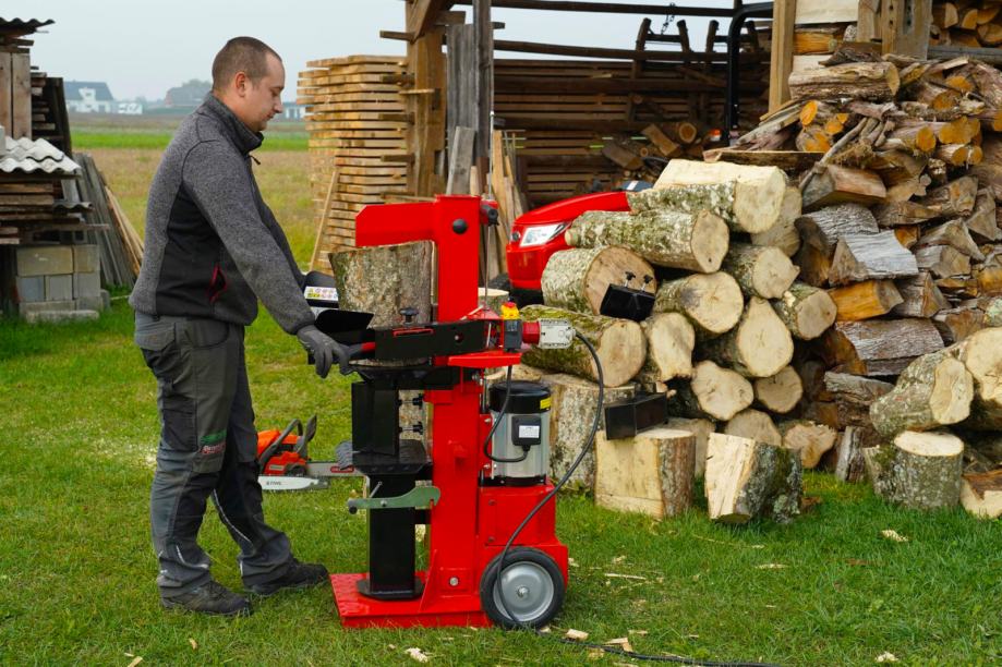 Električni cjepač drva 10 T namijenjen je korisnicima kojima je potreban praktičan i pouzdan cjepač za pripremu drva u kućnom okruženju, drvarnici, na terenu ili u skladištu. Sa silom cijepanja od 10 tona i visokom radnom brzinom omogućuje učinkovito cijepanje, pri čemu električni pogon osigurava tihi i jednostavan rad.