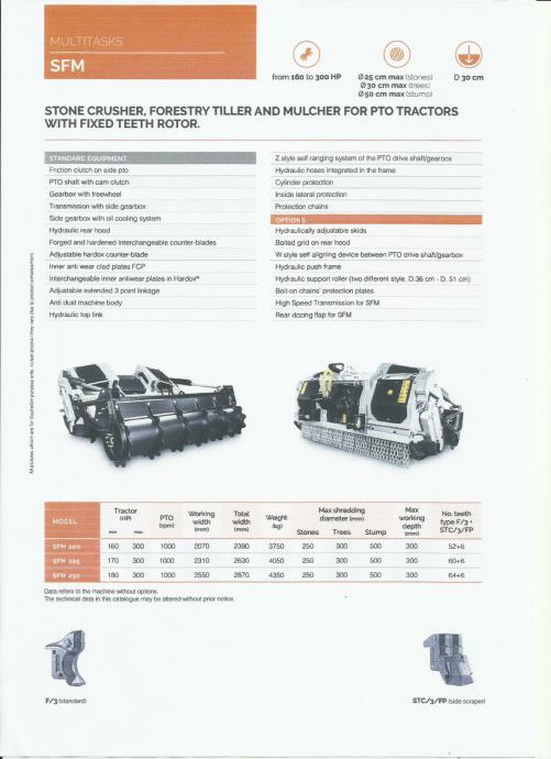 SFM freza / malčer se upotrebljava za traktore snage 160 - 300 ks ovisno o modelu i radnoj širini.