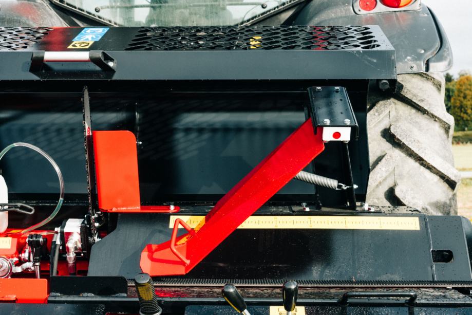Dolžino reza je mogoče nastaviti po potrebi. Ekscentrik na omejevalniku dolžine se po rezanju samodejno odmakne, kar zagotavlja hiter in nemoten padec lesa v cepilno komoro.