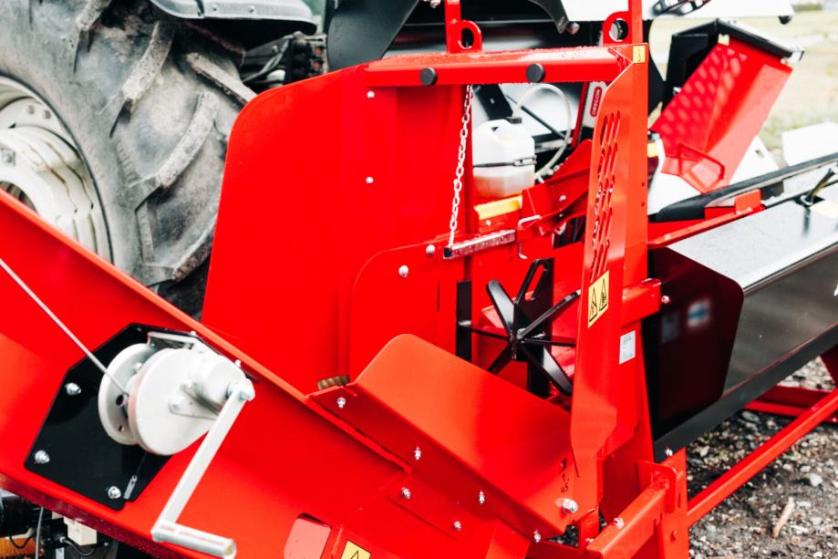 Za vaše potrebe so na voljo 4-, 6- ali 8-delni cepilni noži. Cepilna mreža je pritrjena na ogrodje stroja, podobno kot pri avtomatskih strojih, zasnovanih za celodnevno uporabo. To zagotavlja stabilno cepljenje skoraj vsakega kosa lesa. Hkrati cepilni križi niso ukrivljeni. Cepilni bat je večji kot običajno in zaradi štrlečega konca zagotavlja, da se vsi kosi razcepijo. Utor na dnu cepilne komore se konkavno razširi navzdol in tako zagotavlja samočiščenje cepilne komore. Upravljavec stroja se tako lahko popolnoma osredotoči na proizvodnjo lesa.