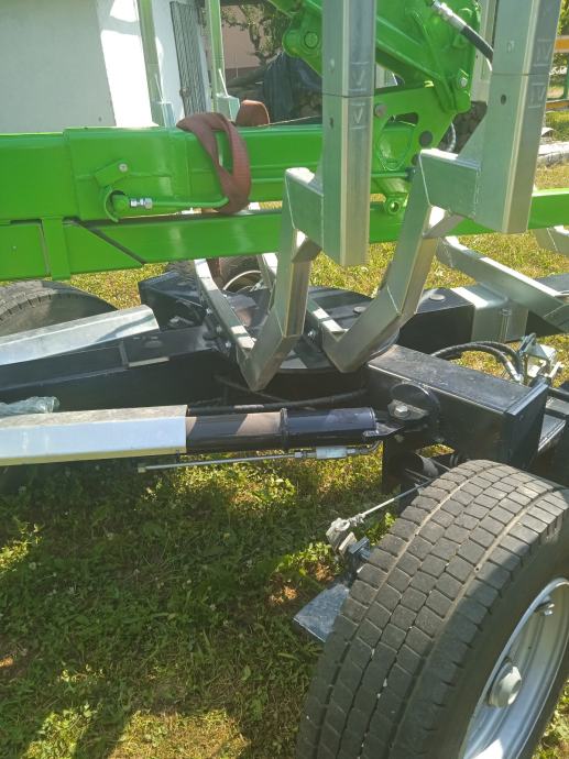 Ručice na prikolici nosači su Pocinčani te se lako skidaju i demontiraju kako vam paše utovarni prostor dužine 4000mm.Uz nju dolazi novi grajfer 1000mm.sa rotatorom kojeg treba ugraditi.