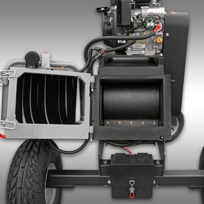 Zahvaljujući svom snažnom motoru i visokokvalitetnoj rezalnoj jedinici, Jansen® GTS-3000 bez problema obrađuje granje promjera do približno 10–12 cm (ovisno o vrsti drva i njegovoj strukturi). Robusna konstrukcija, u kombinaciji s revidiranom, povećanom uljnom lijevkom, omogućuje učinkovitu obradu grmovitog ili granatog otpada. Optimizirano suprotno rezanje osigurava bolje ponašanje usisavanja.