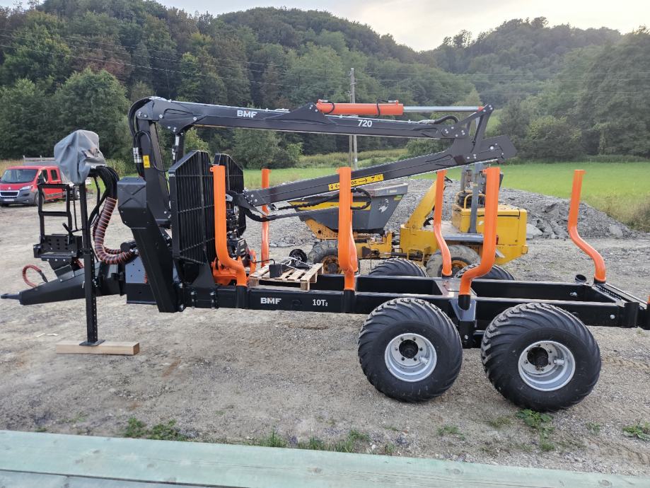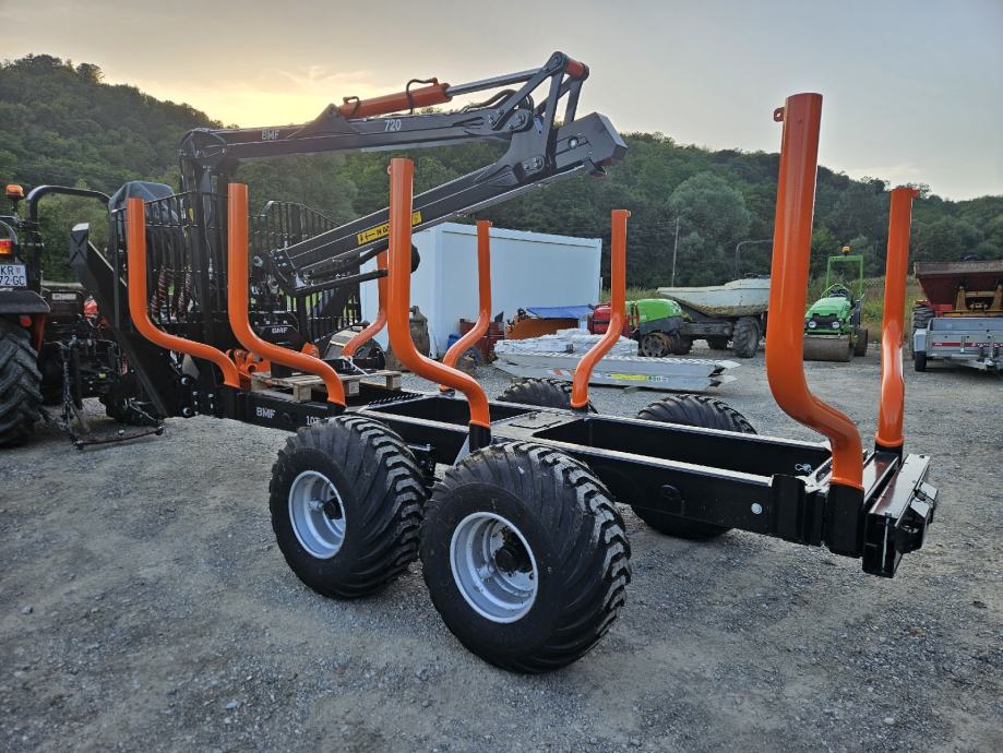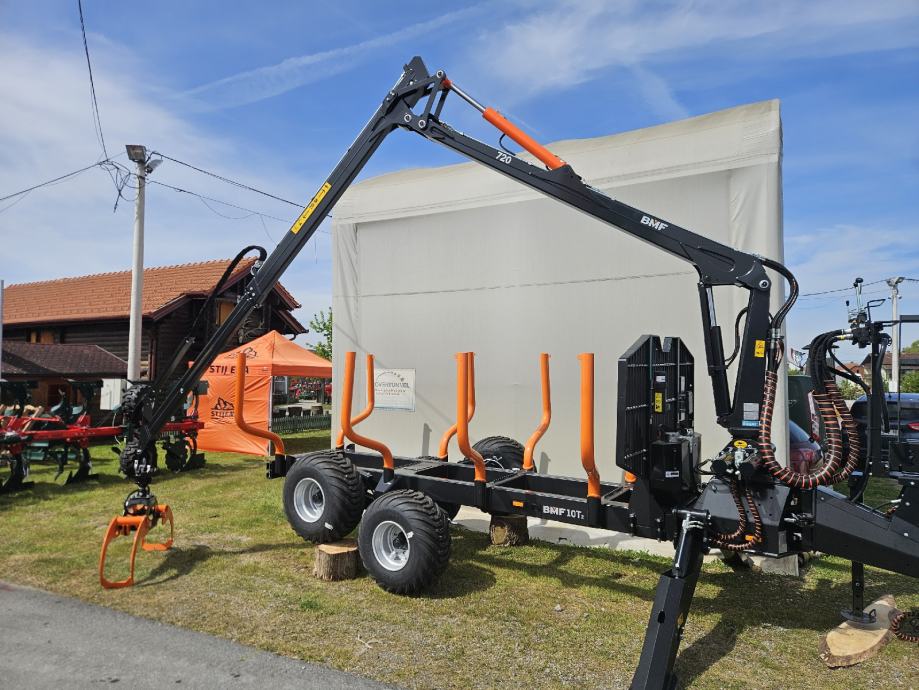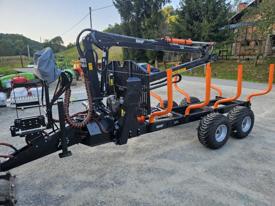 Prodajemo nove pro prikolice BMF 10T2 sa kranom 720 (dohvat 720cm) , 1350kg na 4metra , teleskop na hidraulično izvlačenje , roto grajfer , pomicanje ruda ljevo - desno preko hidraulike(2 cilindra), VLASTITA PUMPA ZA HIDRAULIKU , kočnice na sva 4 kotača SVI DOKUMENTI ZA REGISTRACIJU , prikolice su nove nekorištene , kvalitetne izrade