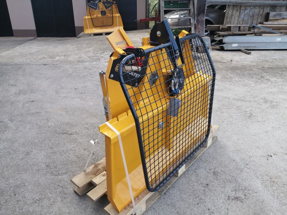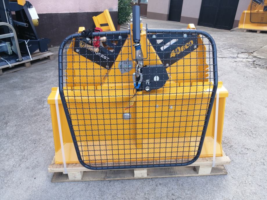 Mehanski vitel Uniforest 40 eco z vlečno silo 4 t ima na sprednji strani velika odlagalna mesta ter pregibno zaščitno mrežo za lažji transport.