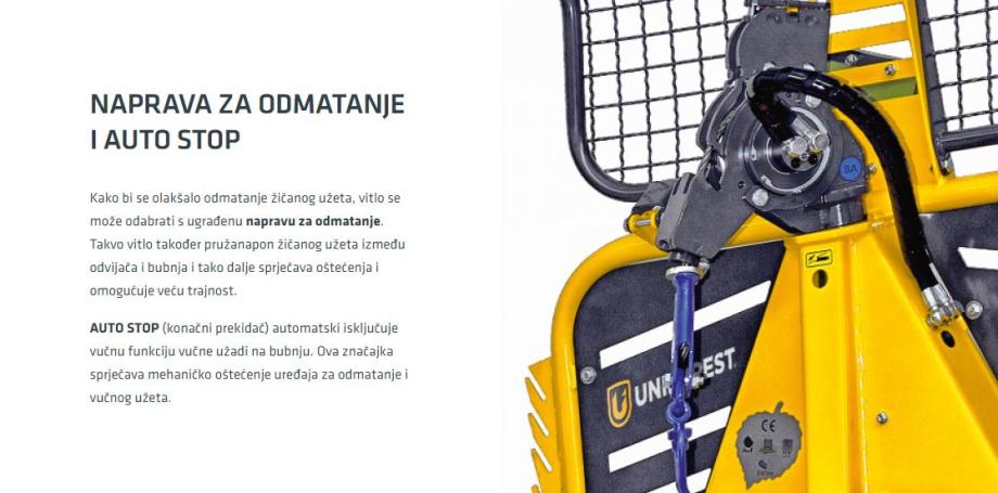 AUTO STOP (konačni prekidač) automatski isključuje vučnu funkciju vučne užadi na bubnju. Ova značajka sprječava mehaničko oštećenje uređaja za odmatanje i vučnog užeta.