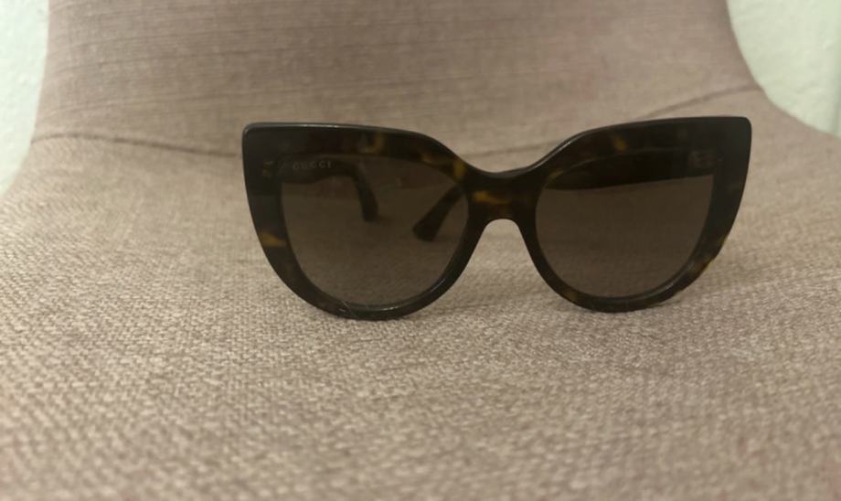 Prodajem Gucci sunčane naočale u cat-eye obliku. Okvir je tamnosmeđe boje s elegantnim uzorkom. Naočale dolaze s originalnom torbicom za čuvanje i futrolom. Klasičan Gucci dizajn koji nikad ne izlazi iz mode.