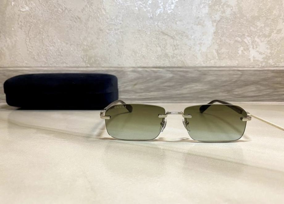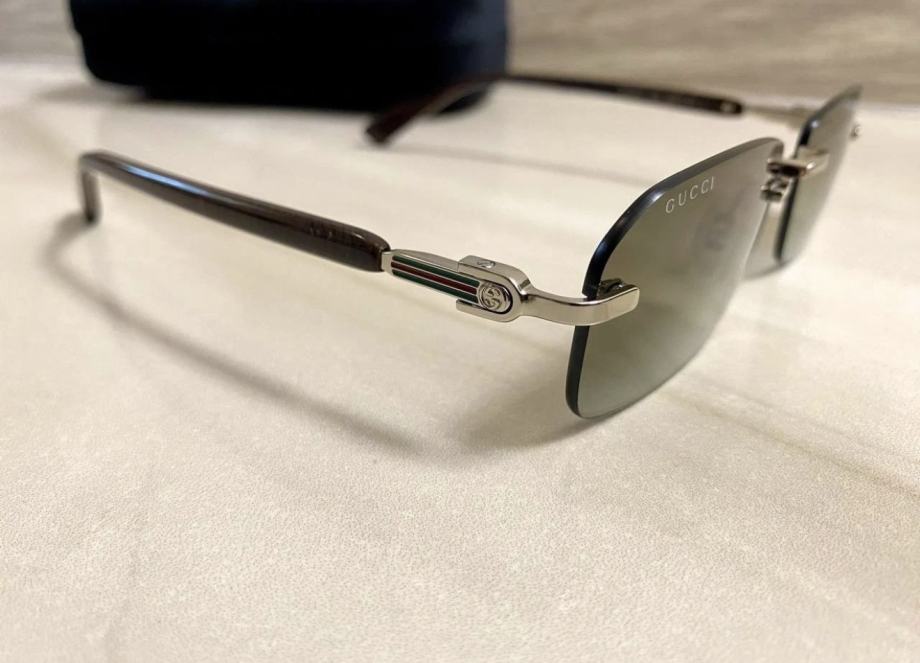 Naočale imaju metalni okvir u srebrnoj boji s prepoznatljivim Gucci detaljima.