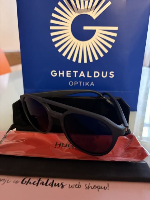 Nove zapakirane Hugo sunčane naočale. Kupljene u Ghetaldus optici. Nikad nisu nošene. Kutija i krpica dolaze s naočalama.