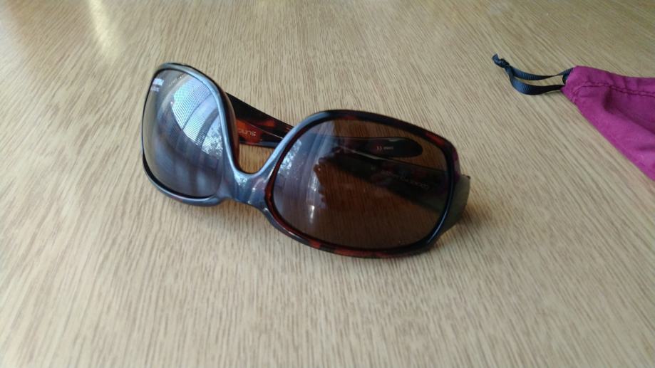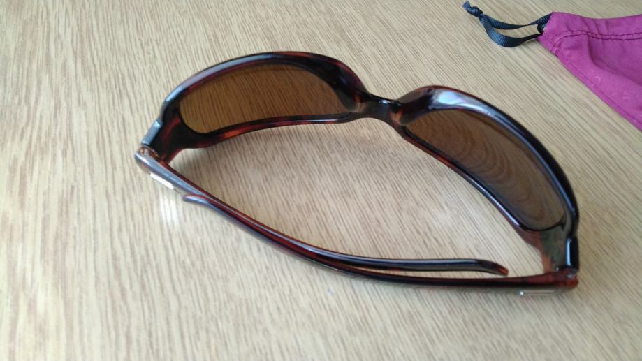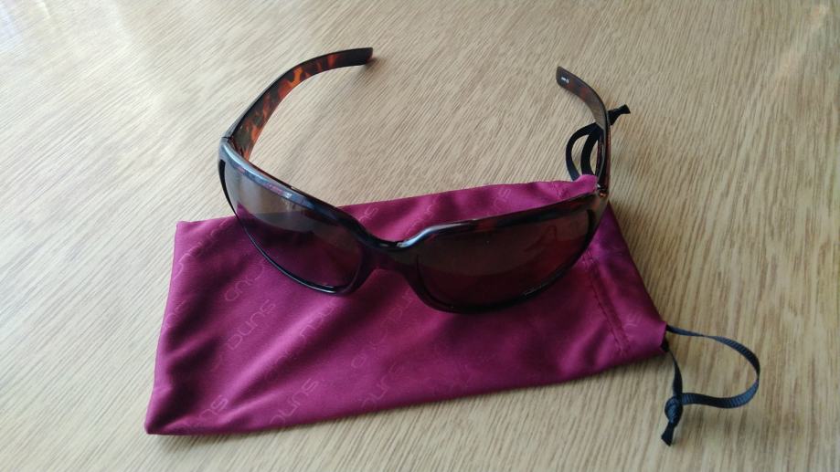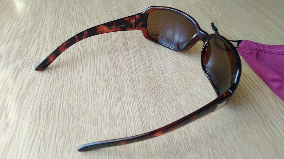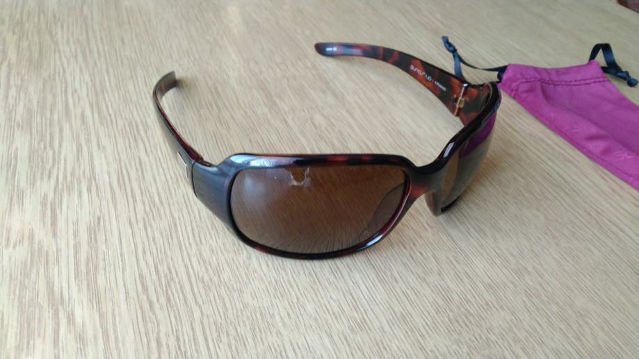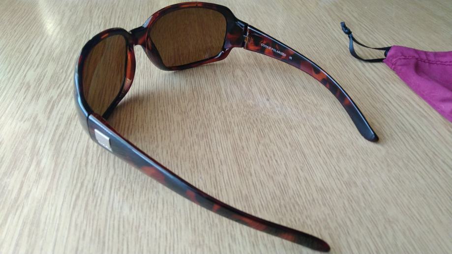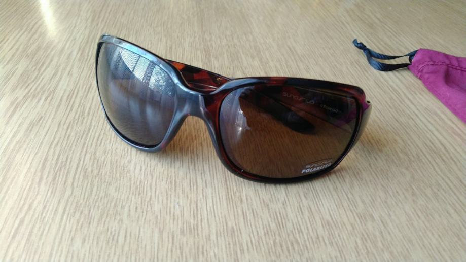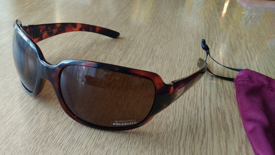 Nenošene polarizirane sunčane naočale sa torbicom i bijelom kartonskom kutijom. Smeđeg "kornjača" okvira sa smeđim staklom. Naočale su malo veće od običnih sunčanih, vidi slike. Proizvođač je američka tvrtka Suncloud, naziv naočala je Cookie. Širina između ušiju je 14,5 cm. Pašu i za žene i za muškarce (unisex).
