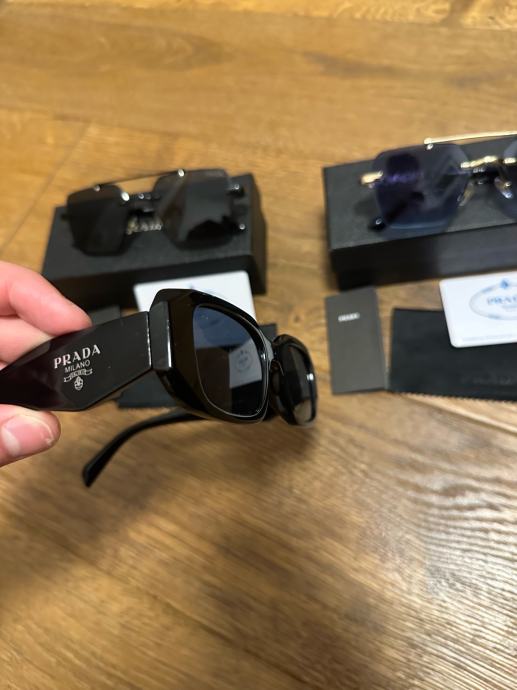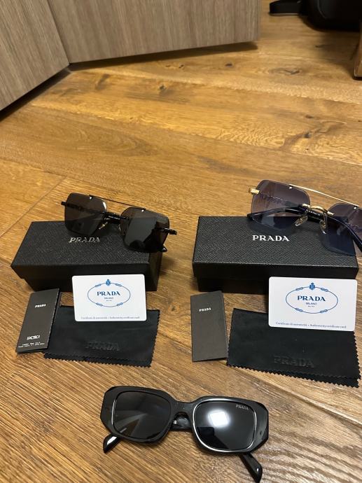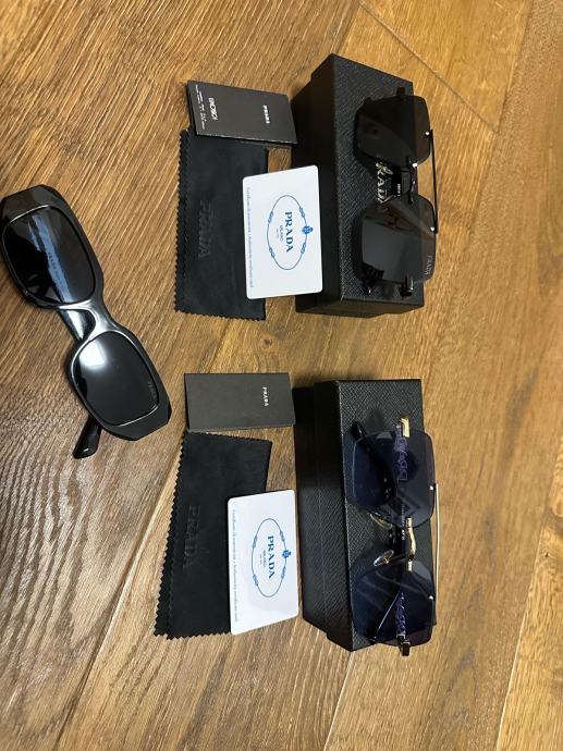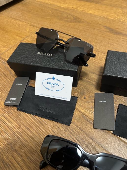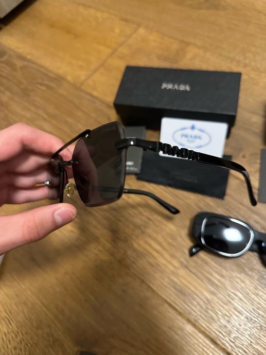Prodajem original Prada sunčane naočale, potpuno nove s etiketom. Dolaze u originalnoj kutiji s certifikatom autentičnosti i krpicom za čišćenje. Klasičan dizajn s tamnim lećama i prepoznatljivim Prada logom. Elegantne naočale visokog kvaliteta izrade.